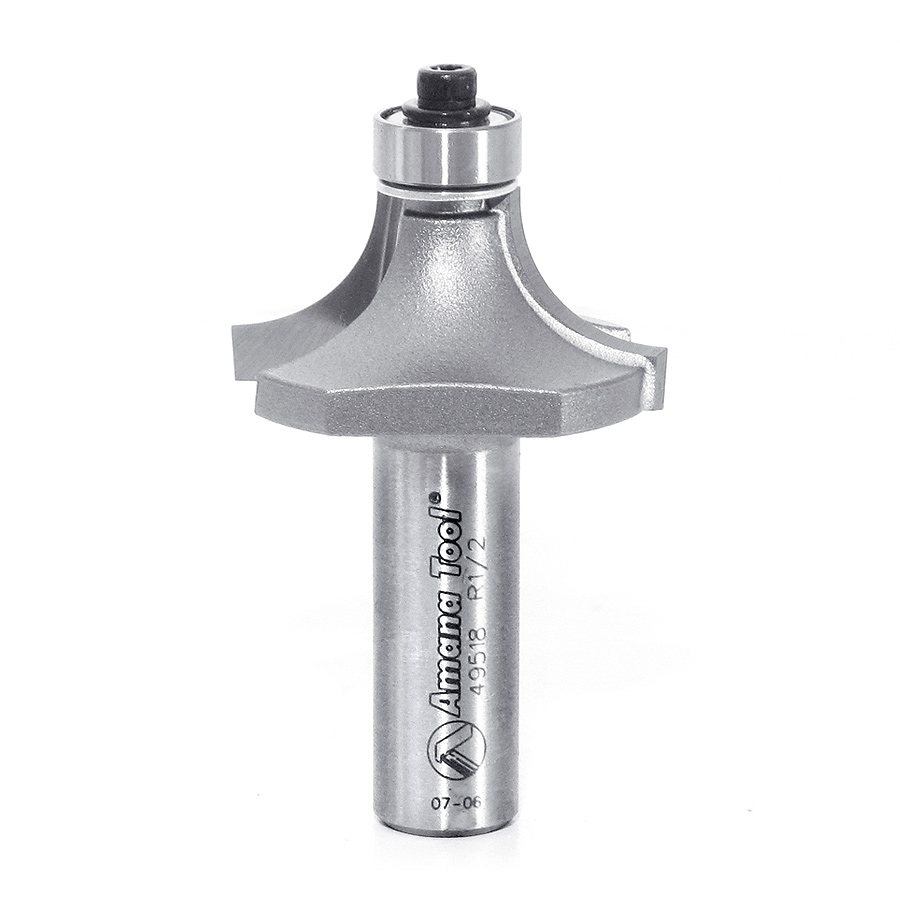 The basic edge-forming bit, the corner-rounding bit rounds an edge to a given radius. The tool is shouldered to cut a fillet. The cut can be used to ease edges, as a simple profile, or as a part of a complex one. Also known as roundover, rounding over and quarter-round. If a smaller pilot bearing is used, a second shoulder can be produced, in effect making the bit a beading bit.